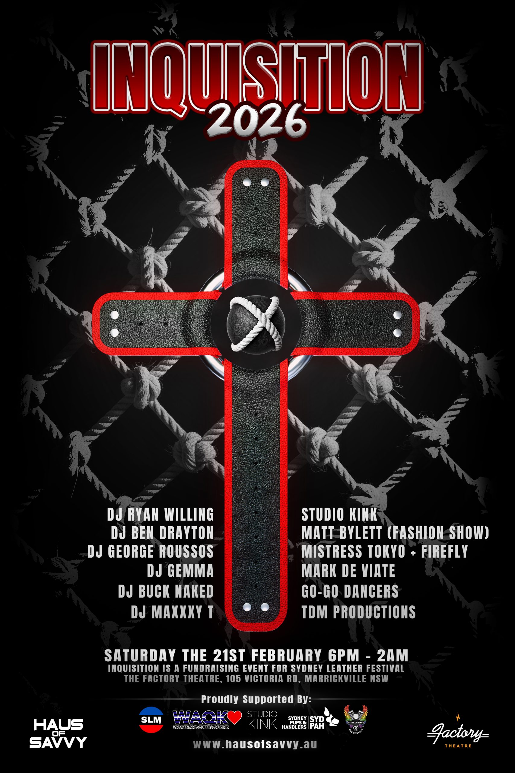 HAUS OF SAVVY Kink & Fetish events, with a twist, including; MEAT RACK, DYMK, CHAPS, The Blue Oyster Bar, Dog Haus, Sydney Leather Titles. Producing fetish events for the Kink and Queer (LGBTQI+) community, with a passion to bring back events long lost, but not forgotten, like the retun of INQUISITION.